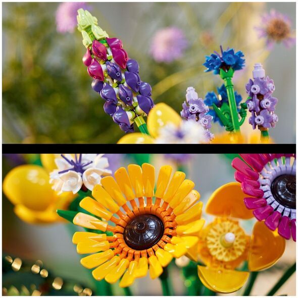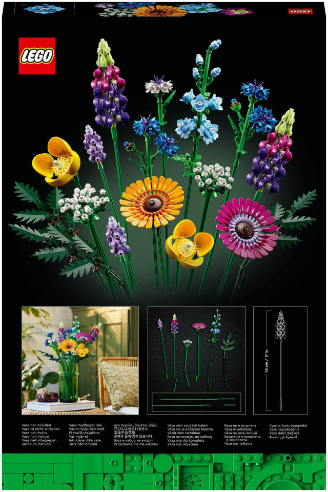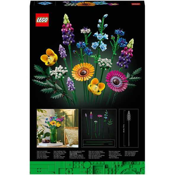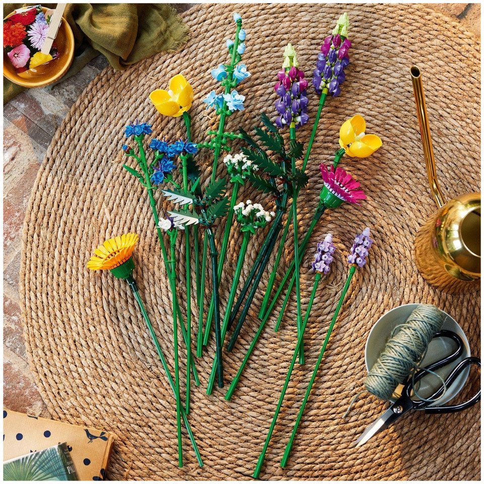 Παρακολουθήστε τη δημιουργικότητά σας να ανθίζει. Φτιαγμένο εξ ολοκλήρου από λεπτομερή τουβλάκια LEGO, αυτό το μπουκέτο αγριολούλουδας διαθέτει οκτώ είδη λουλουδιών σε ρυθμιζόμενους μίσχους. Οι εκκολαπτόμενοι ανθοπώλες και οι λάτρεις των λουλουδιών μπορούν να αφιερώσουν ώρες χτίζοντας και ανακαλύπτοντας λουλούδια εμπνευσμένα από άνθη αραβοσίτου, λεβάντα, ουαλικές παπαρούνες, ξύλινο τσέρβιλο, δερμάτινη φτέρη, ζέρμπερες, δελφίνια και λούπινα. Μόλις ολοκληρωθεί το μοντέλο, τα λουλούδια LEGO μπορούν να τοποθετηθούν στο αγαπημένο σας βάζο για να δημιουργήσετε ένα όμορφο κεντρικό κομμάτι που θα σκορπίσει έναν σπόρο χαράς σε κάθε δωμάτιο.