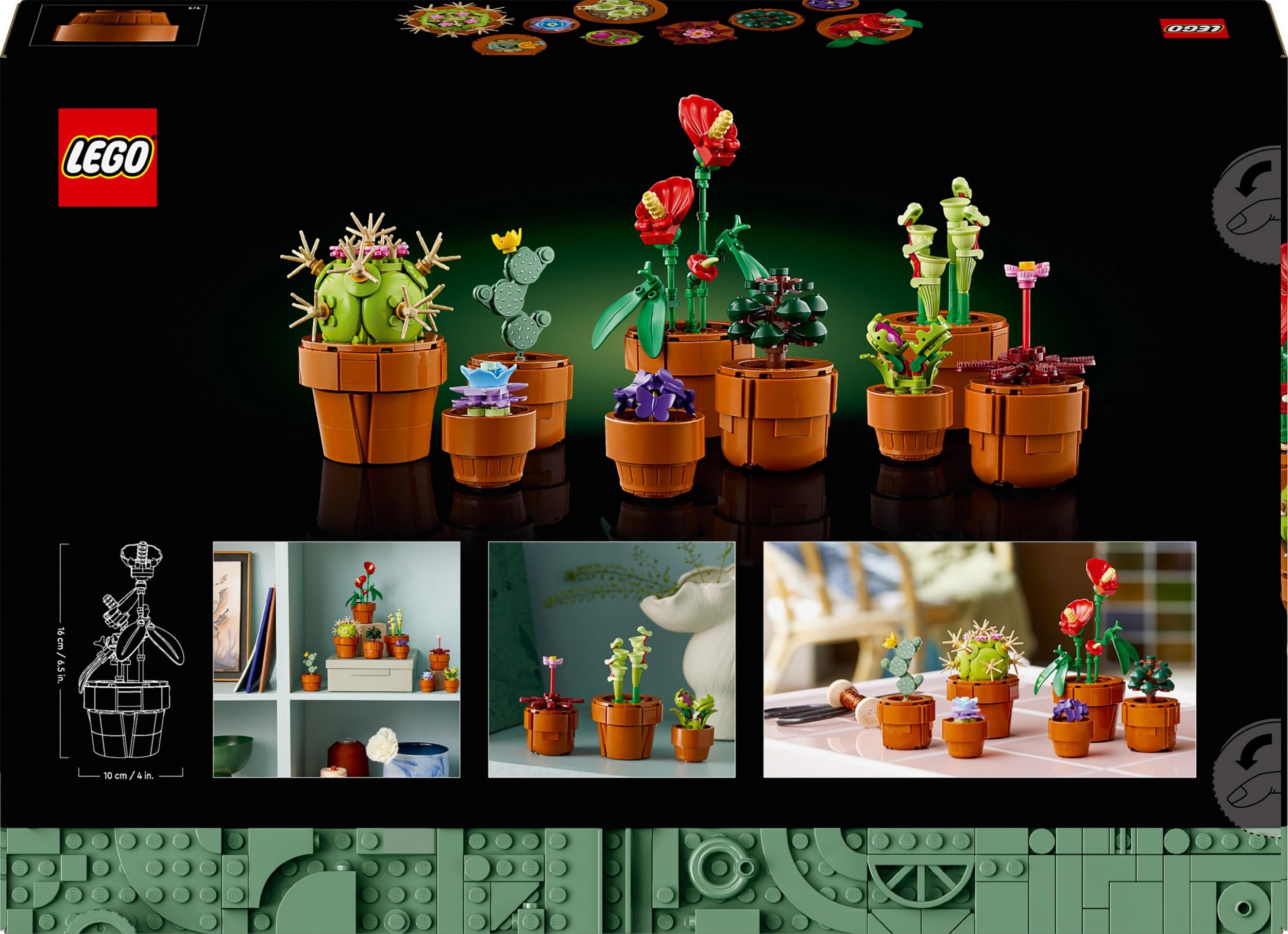Stwórz elegancką dekorację kwiatową, której nie trzeba podlewać, dzięki temu zestawowi do budowania dla dorosłych. LEGO® Icons Małe roślinki (10329) obejmuje pustynne, tropikalne i mięsożerne gatunki roślin, a każda z nich mieści się w doniczce w kolorze terakoty. Zrelaksuj się, tworząc każdą z dziewięciu roślin, a następnie ustaw je w domu lub biurze.
