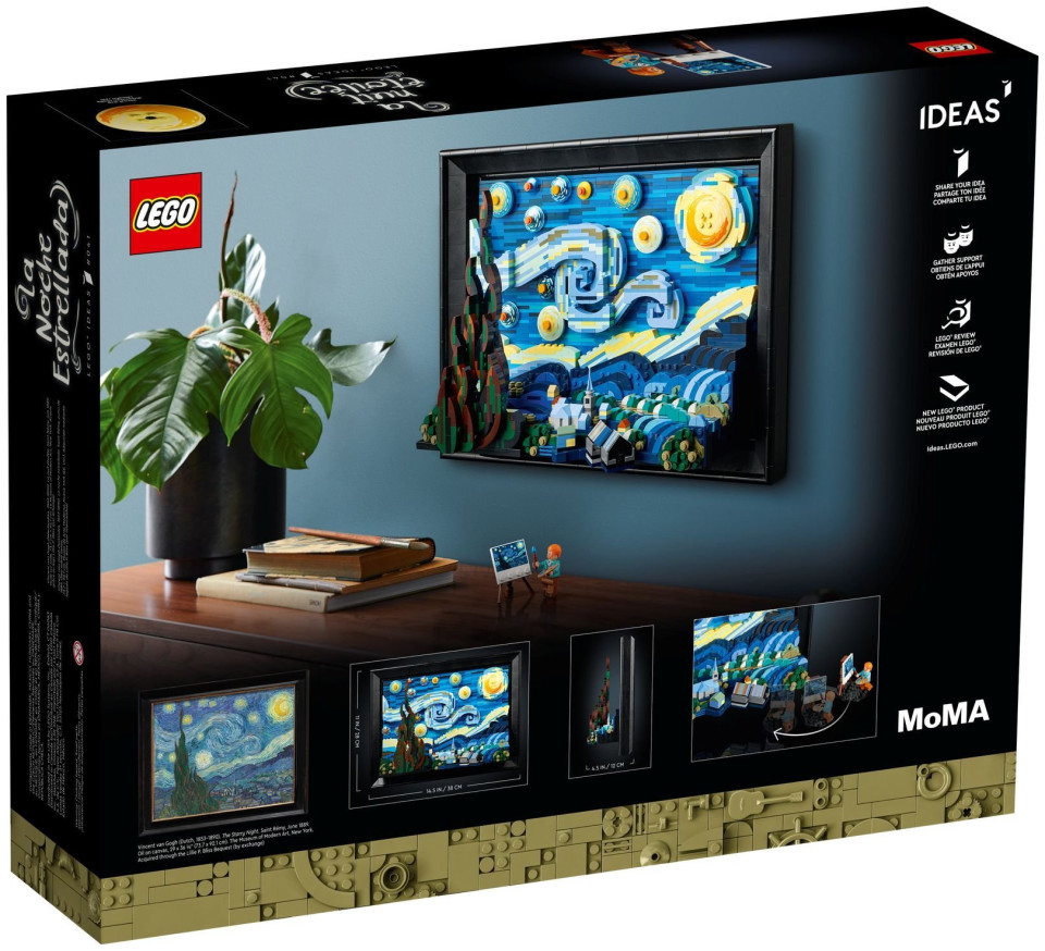 Το «The Starry Night» είναι σίγουρα ένα από τα πιο γνωστά έργα. Η δυνατότητα κατασκευής του από τουβλάκια LEGO ως εικόνα που μπορείτε να τακτοποιήσετε σε έναν από τους τοίχους είναι μια εξαιρετική επιλογή! Το μοντέλο ζωγραφικής έχει ύψος περίπου 28 εκατοστά, πλάτος 38 εκατοστά και βάθος 12 εκατοστά. Μπορείτε να το αντέξετε ή να το κρεμάσετε σε ένα γάντζο στον τοίχο - και στις δύο περιπτώσεις θα φαίνεται εκπληκτικό, και σε συνδυασμό με τη μίνι φιγούρα Vincent van Gogh θα δημιουργήσει ένα τέλειο δίδυμο.