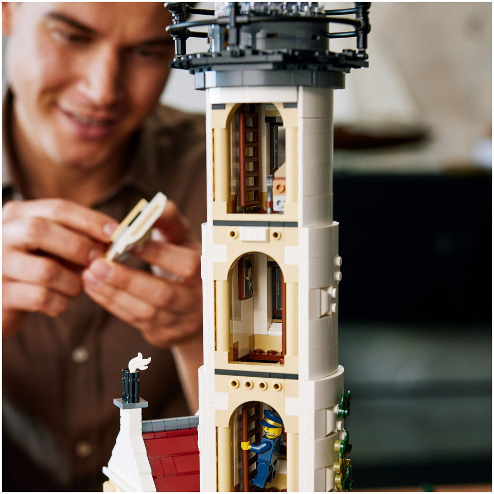 Απελευθερώστε τη δημιουργικότητά σας καθώς κατασκευάζετε το μοντέλο LEGO® Ideas Mechanized Lighthouse (21335). Περιλαμβάνει έναν φάρο με ένα μηχανοκίνητο περιστρεφόμενο φως και έναν μοναδικό φακό Fresnel και ένα εξοχικό σπίτι με ένα λαμπερό τζάκι. Το εξοχικό σπίτι και ο πύργος προσφέρουν εύκολη πρόσβαση για να θαυμάσετε το εσωτερικό τους, και βρίσκονται σε έναν βράχο χτισμένο με τούβλα που οδηγεί σε μια προβλήτα και μια σπηλιά που περιέχει πειρατικό θησαυρό. Μίνι φιγούρες φαροφύλακα και ναύτη, μια οικοδομήσιμη κωπηλασία και φιγούρες γλάρων και γατών συμπληρώνουν το σετ.