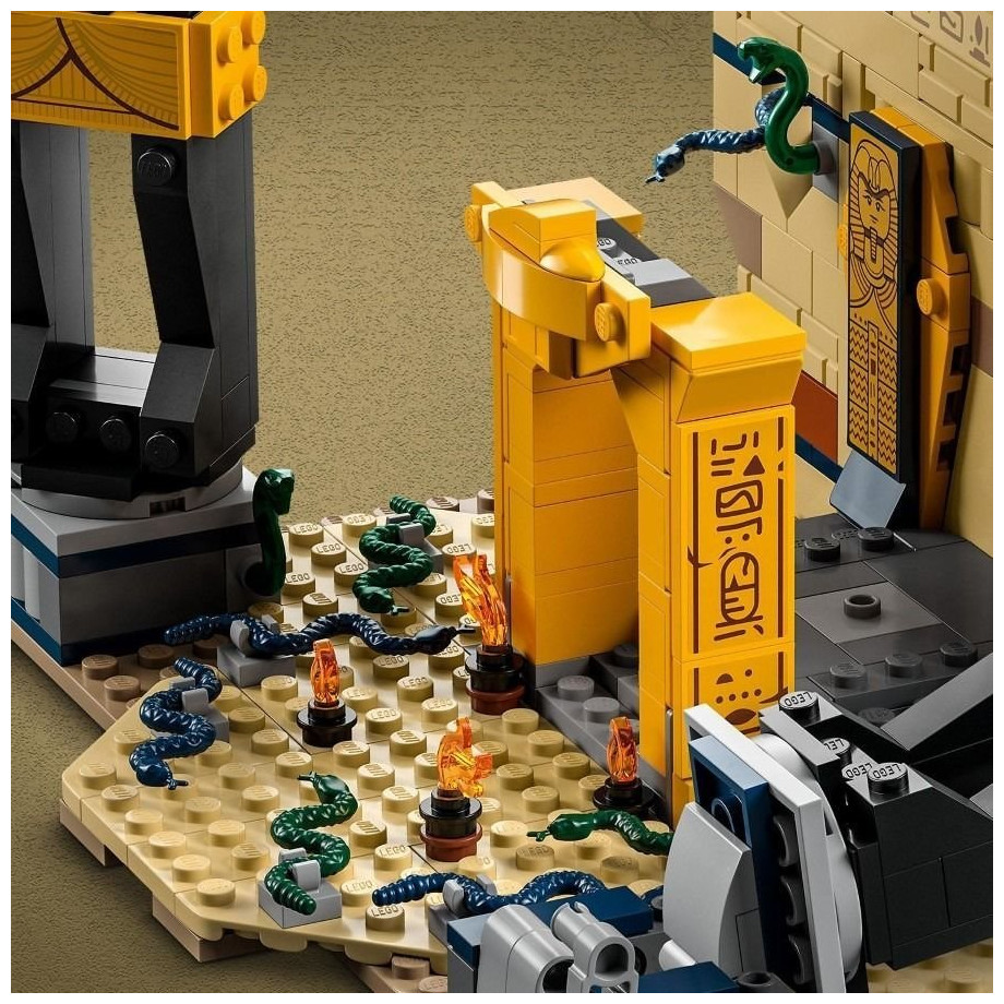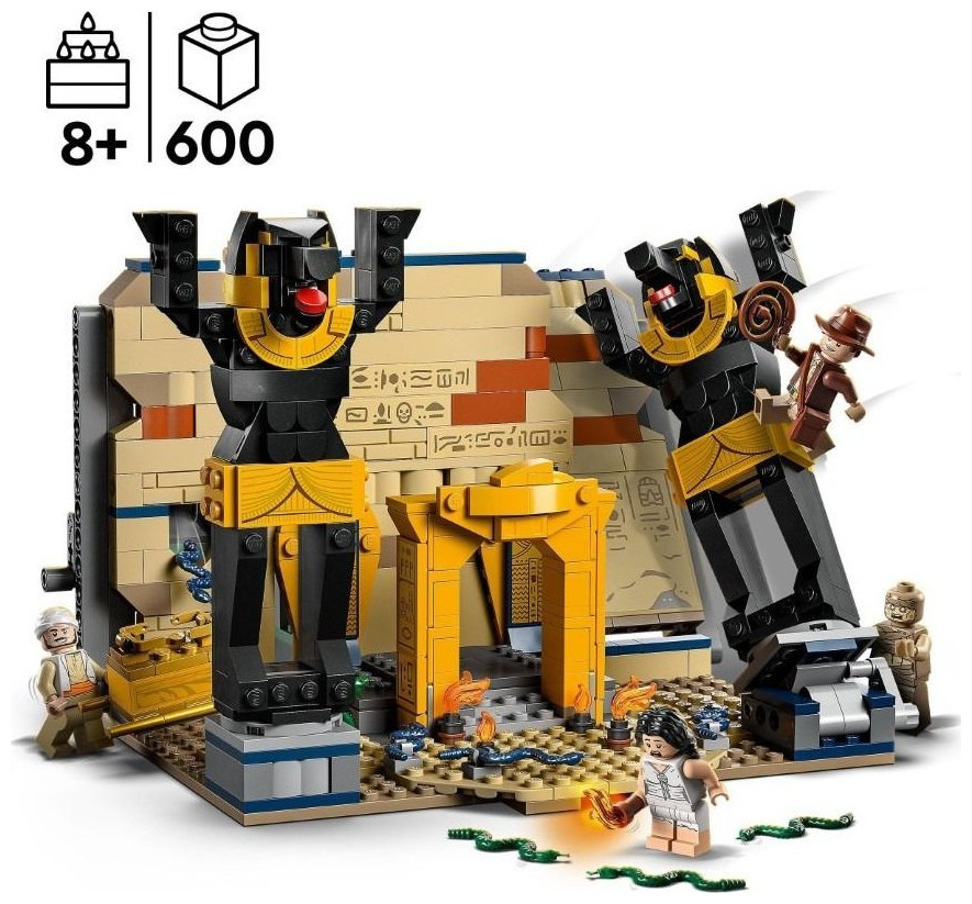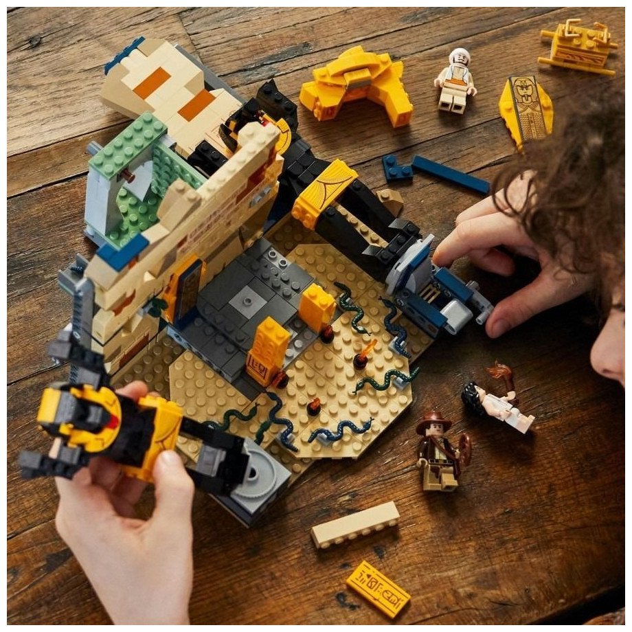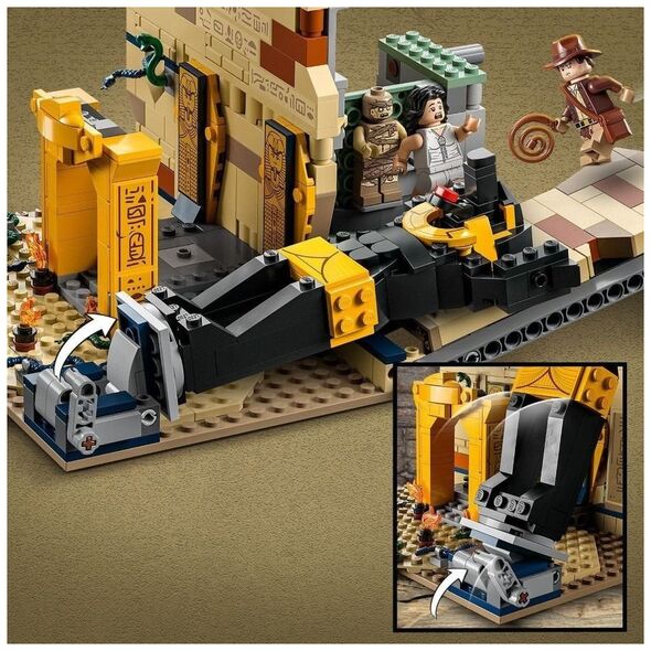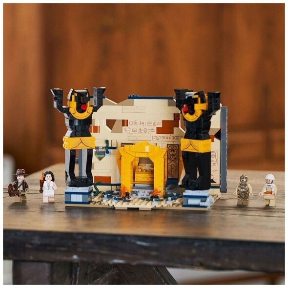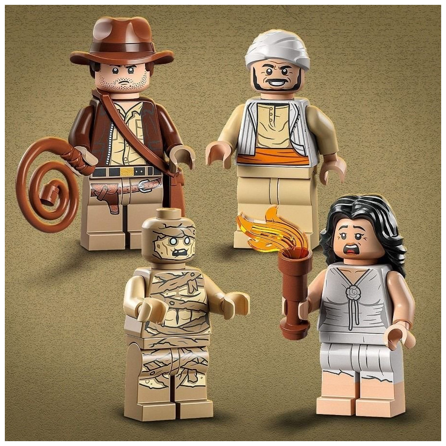 Τέσσερις μίνι φιγούρες - ο Indiana Jones™ με το διάσημο καπέλο και το μαστίγιο του, η Marion Ravenwood™, ο Sallah™ και μια μούμια. Υπάρχουν επίσης πολλά φίδια: στο πάτωμα και περνούν από τον τοίχο
