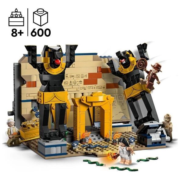 Με αυτό το σετ LEGO® Indiana Jones™ LEGO® Indiana Jones™ Lost Tomb Escape (77013), τα παιδιά μπορούν να ζήσουν συναρπαστικές περιπέτειες απευθείας από την ταινία Raiders of the Lost Ark. Αυτό είναι ένα υπέροχο δώρο για παιδιά οκτώ ετών και άνω. Το σετ περιλαμβάνει έναν ναό με δύο αγάλματα, ένα μυστικό πέρασμα, μια μούμια και φίδια στο έδαφος και μέσα από τον τοίχο.