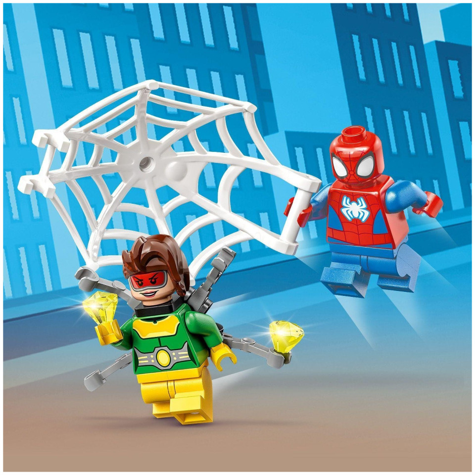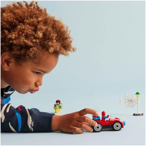 Ο Spider-Man και ο Doc Ock σε ένα κυνηγητό αράχνηςΗ κλοπή διαμαντιών ξεκινά τη δράση και οδηγεί τα παιδιά σε ατελείωτες ευφάνταστες περιπέτειες. Το σετ περιλαμβάνει δύο μίνι φιγούρες - Spider-Man και Doc Ock - και ένα αυτοκίνητο με δύο ιστούς αράχνης που λάμπουν στο σκοτάδι. Ένα ειδικό μπλοκ εκκίνησης με τη μορφή πλαισίου αυτοκινήτου ενθαρρύνει τα παιδιά να κατασκευάσουν μόνα τους το αυτοκίνητο του Spider-Man. Οι εύκολες οδηγίες παρέχονται σε ένα έγχρωμο φυλλάδιο με εικόνες και για ακόμα πιο ψηφιακό παιχνίδι, η εφαρμογή LEGO Builder περιλαμβάνει διαισθητικά εργαλεία ζουμ και περιστροφής που επιτρέπουν στα παιδιά να οπτικοποιήσουν το μοντέλο που κατασκευάζουν.