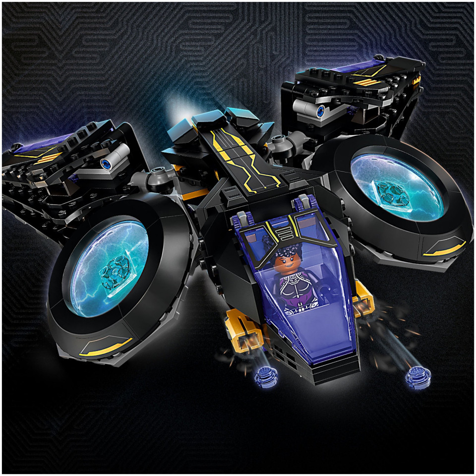 Sky adventures - Το σκάφος του Shuri έχει ύψος πάνω από 7 εκατοστά, μήκος 27 εκατοστά και πλάτος 26 εκατοστά και συνδέεται εύκολα με άλλα παιχνίδια κατασκευής LEGO® Marvel