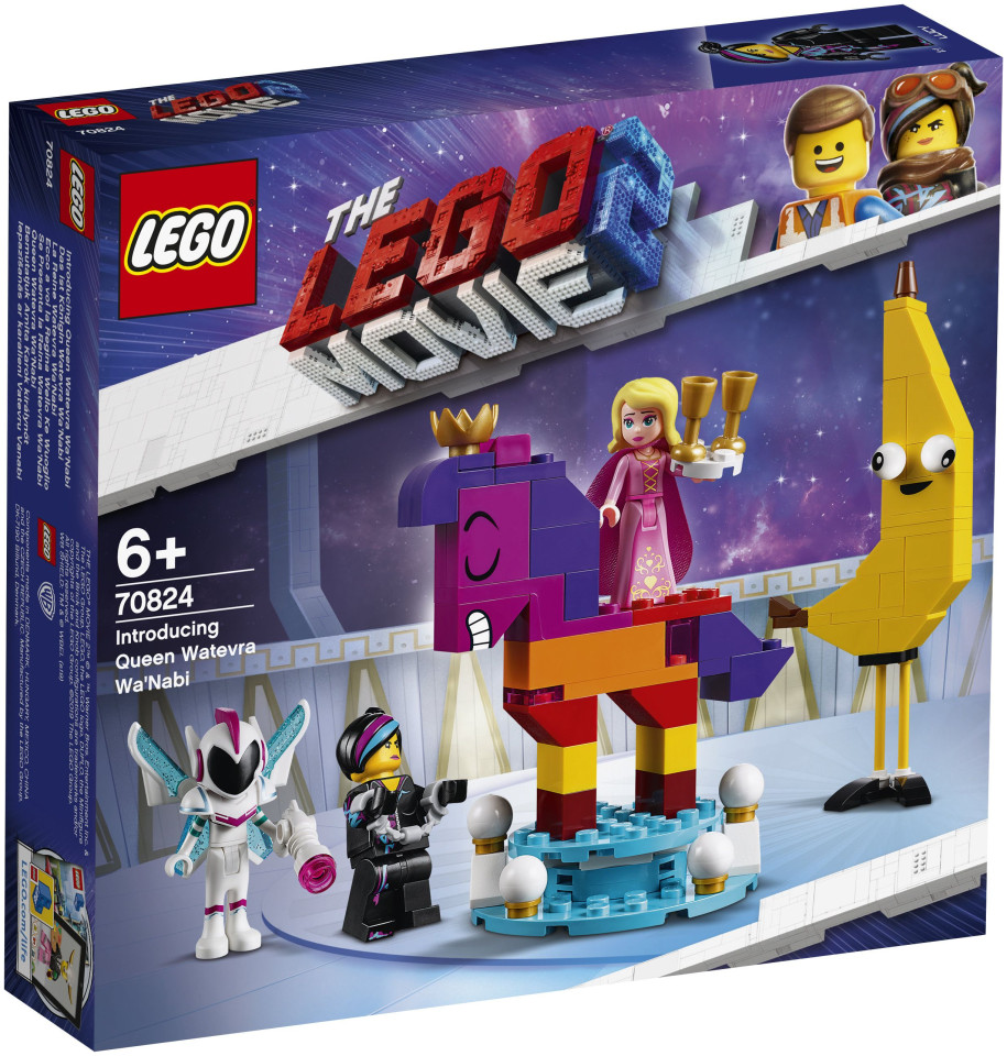 Γίνετε μέλος της Lucy καθώς συναντά για πρώτη φορά την μεταβαλλόμενη βασίλισσα Wisimi I'powiewa με το σετ κτιρίων THE LEGO MOVIE 2 70824 Queen Wisimi I'powiewa. Αυτό το ενδιαφέρον μοντέλο διαθέτει ένα τούβλο βασίλισσα Wisimi I'powiewa σε σχήμα αλόγου. Στέκεται σε μια περιστρεφόμενη πλατφόρμα, ο χάρακας έχει τέσσερα εναλλάξιμα πρόσωπα με διαφορετικές εκφράσεις, τα οποία μπορούν να χρησιμοποιηθούν μετά την ανακατασκευή του σε ένα σωρό από μπλοκ. Το σετ περιλαμβάνει επίσης μια οικοδομήσιμη μπανάνα, φιγούρες μίνι κούκλας Sweet Mayhem και Susan και μια μίνι φιγούρα Lucy.