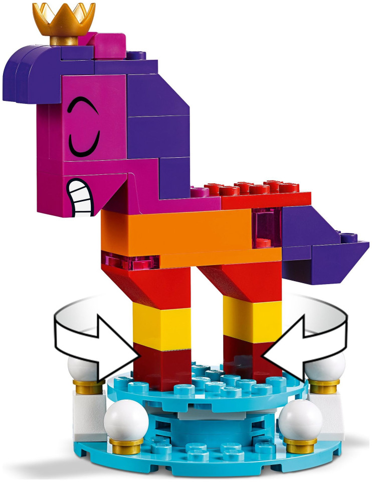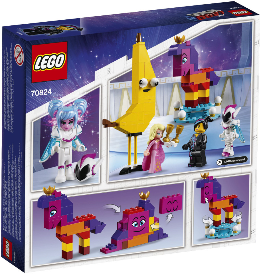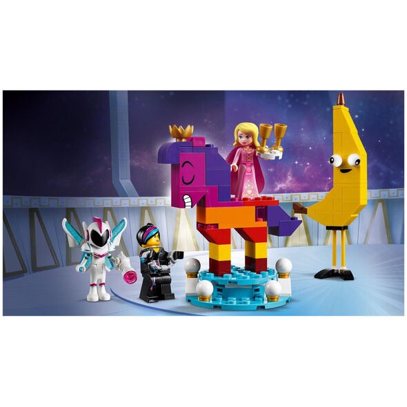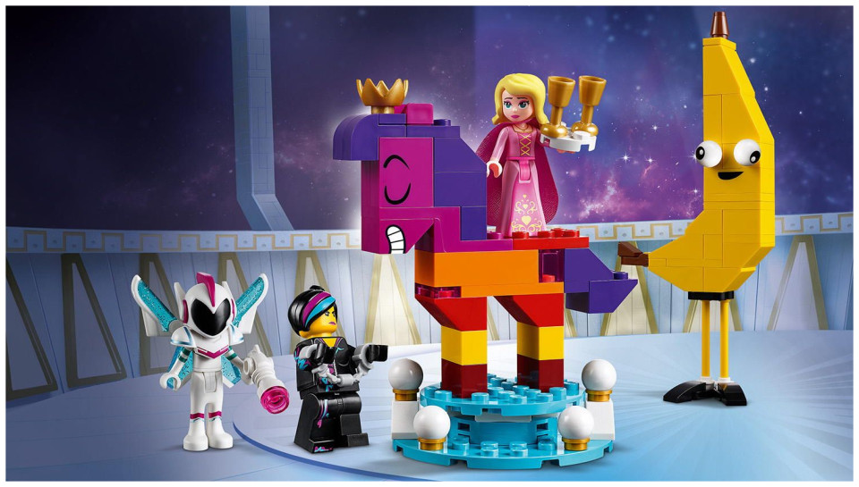 Περιλαμβάνει 5 χαρακτήρες από την ΤΑΙΝΙΑ LEGO 2: φιγούρες σε σχήμα αλόγου που μπορούν να κατασκευαστούν από τον Bananiak και τη βασίλισσα Wisimi I'powiew, καθώς και φιγούρες μίνι κούκλας Sweet Mayhem και Susan (νέες για τον Ιανουάριο 2019) και μια μίνι φιγούρα Lucy (νέα για τον Ιανουάριο του 2019). ).