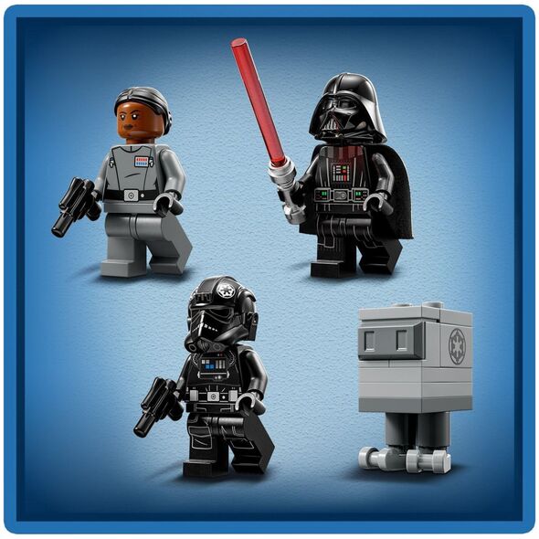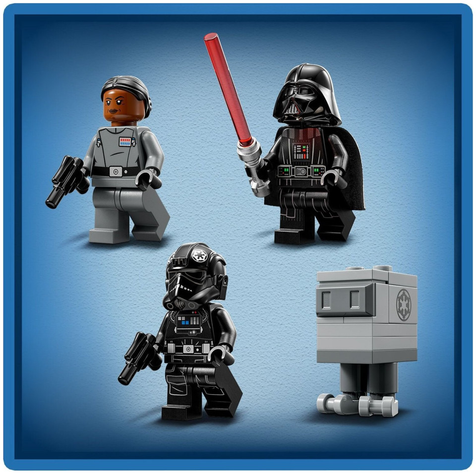 3 μίνι φιγούρες LEGO® Star Wars™ με όπλα και μια φιγούρα droid GNK - ο Darth Vader με ένα Lightsaber, ο Αντιναύαρχος Sloane και ένας πιλότος βομβαρδιστικών TIE με εκτοξευτές, καθώς και μια φιγούρα droid GNK