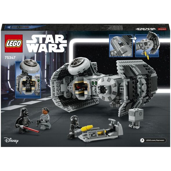 Οι θαυμαστές του Star Wars: The Empire Strikes Back μπορούν να παίξουν ρόλους σε αποστολές Imperial για να νικήσουν την Εξέγερση με τα τούβλα TIE Bombers LEGO® (75347). Το πλοίο διαθέτει ένα ανοιγόμενο πιλοτήριο με χώρο για μια μίνι φιγούρα, λειτουργία ρίψης τορπίλης και 2 βολάν. Αυτό είναι ένα υπέροχο δώρο για τους θαυμαστές του Star Wars™ από εννέα ετών και άνω. Περιλαμβάνει μίνι φιγούρες του Darth Vader, του αντιναύαρχου Sloane και ενός πιλότου βομβαρδιστικού TIE με όπλα, καθώς και ένα droid GNK και ένα καρότσι μεταφοράς τορπιλών.