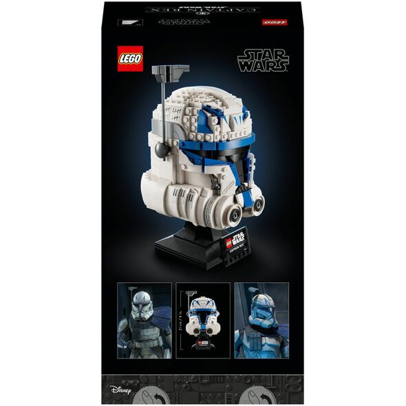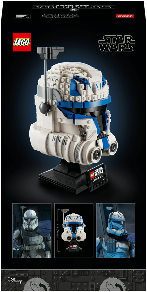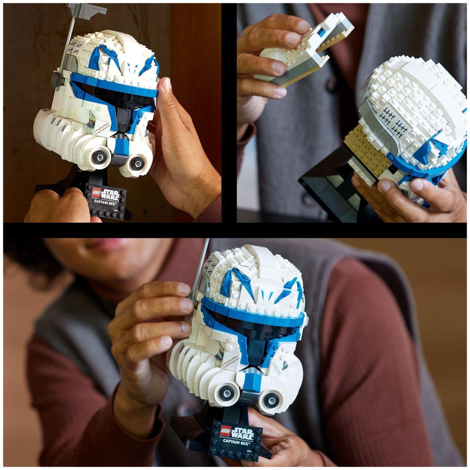 Imponująca ozdoba w stylu „Gwiezdnych Wojen™” z klocków – kolekcjonerska replika hełmu kapitana Rexa ma 21 cm wysokości, 12 cm szerokości i 13 cm głębokości