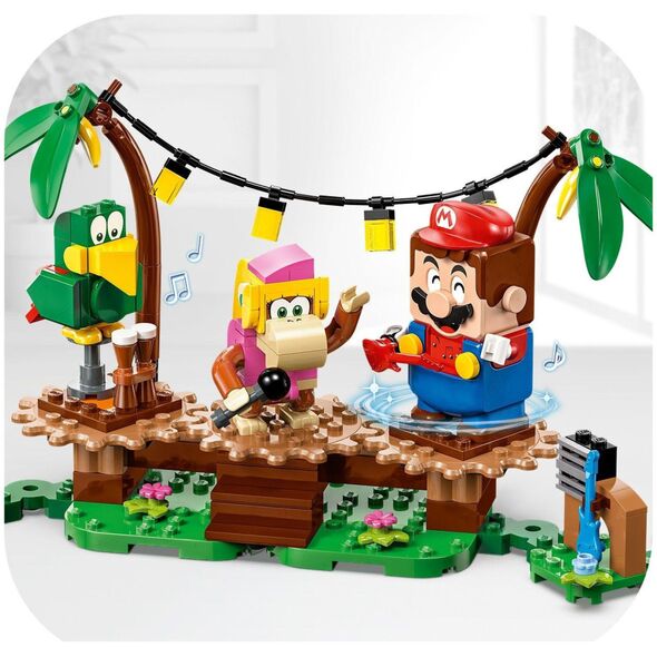 Τα παιδιά μπορούν να εξερευνήσουν τη ζούγκλα, το σπίτι του Donkey Kong™, με αυτό το LEGO® Super Mario™ Dixie Kong Jungle Concert - Expansion Set (71421). Το σετ περιλαμβάνει φιγούρες παπαγάλων Dixie Kong και Squawks, μια οικοδομήσιμη σκηνή, σκηνικά ζούγκλας και μουσικά όργανα και εξοπλισμό. Τοποθετήστε τα LEGO® Mario™, LEGO® Luigi™ ή LEGO® Peach™ (οι φιγούρες δεν περιλαμβάνονται) στο κέντρο της σκηνής και περιστρέψτε τα για να κάνετε τις διασυνδεδεμένες πλατφόρμες σκηνής να περιστρέφονται για να ενεργοποιούν μουσικούς ήχους. Σημείωση: Το αρχικό σετ 71360, 71387 ή 71403 απαιτείται για διαδραστικό παιχνίδι.
