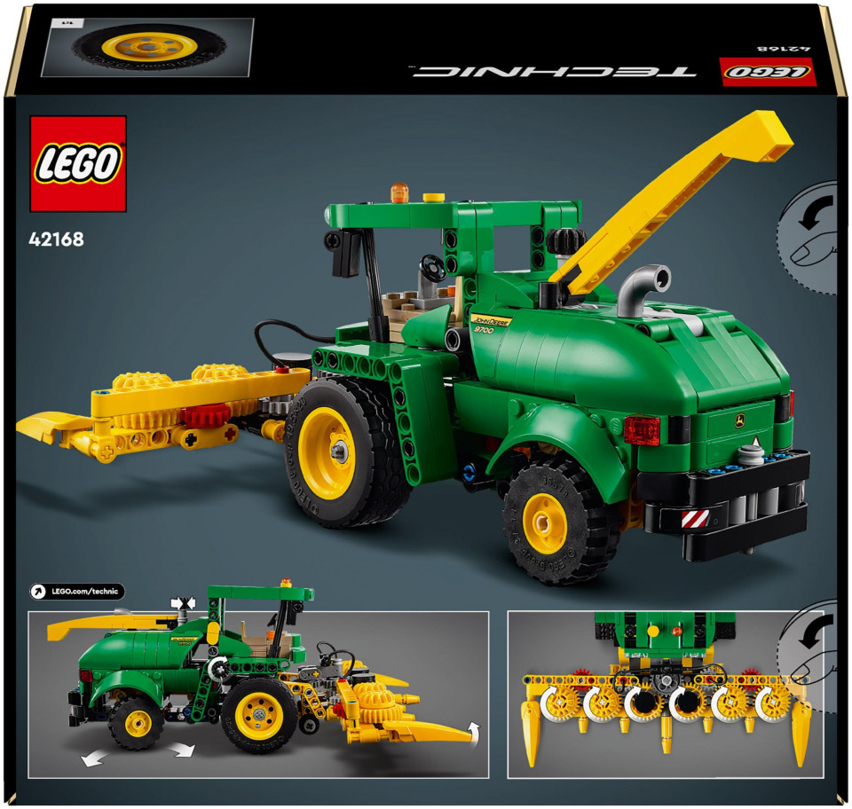 Dzięki zestawowi LEGO® Technic John Deere 9700 Forage Harvester (42168) dziewięciolatki i starsze dzieci, które uwielbiają zabawki rolnicze, mogą cieszyć się kreatywną zabawą. Model ma klasyczną kolorystykę marki John Deere i jest wyposażony w tylne koła skrętne oraz przednią sieczkarnię, którą dzieci mogą podnosić, opuszczać i obracać, aby odtworzyć działanie prawdziwej maszyny do zbierania kukurydzy. Ten zestaw to świetny pomysł na prezent urodzinowy lub na inną okazję dla dzieci, które uwielbiają pojazdy rolnicze i kreatywną zabawę.