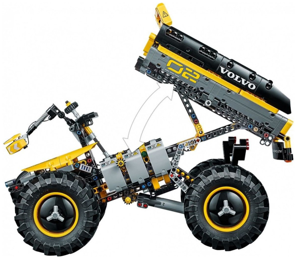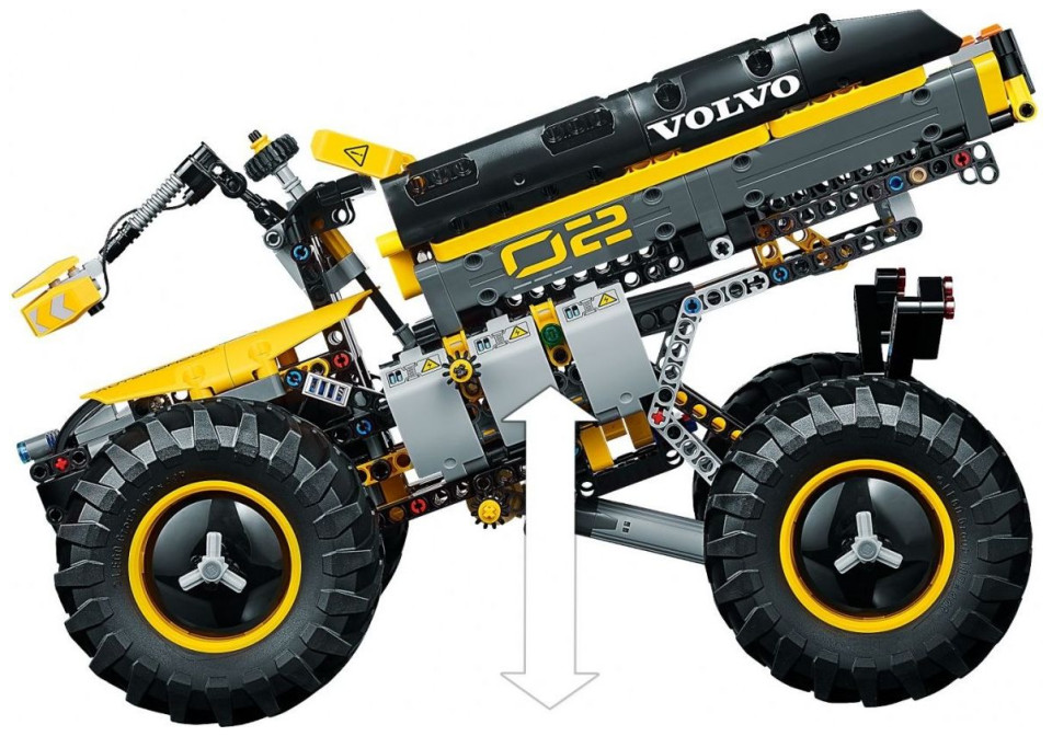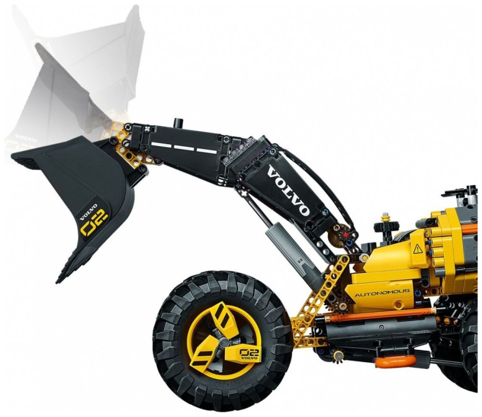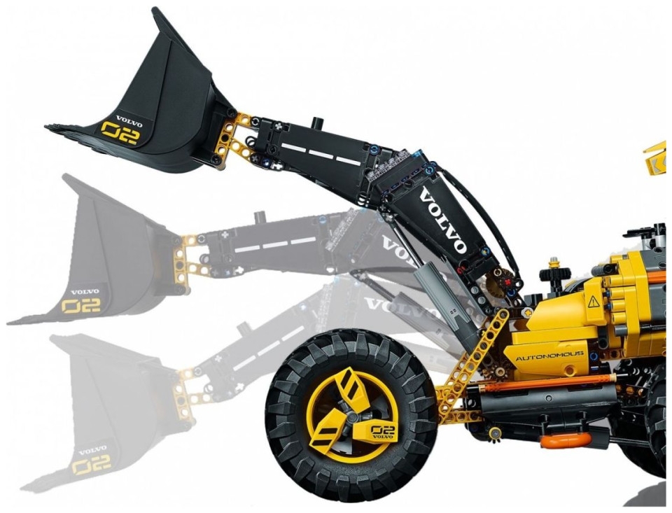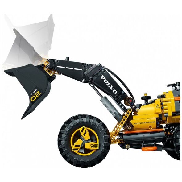 Τα χειροκίνητα χαρακτηριστικά περιλαμβάνουν σύστημα διεύθυνσης με τέσσερις τροχούς, ταυτόχρονη ή ανεξάρτητη λειτουργία μπούμας και κάδου και ρυθμιζόμενο αντίβαρο. Αυτό το σετ LEGO Technic 2 σε 1 σε κλασικά χρώματα της Volvo συνοδεύεται από ένα σετ αυτοκόλλητων που δείχνουν πρόσθετες λεπτομέρειες. Το μοντέλο μπορεί επίσης να ανακατασκευαστεί σε ένα φουτουριστικό ανατρεπόμενο φορτηγό Volvo PEGAX.