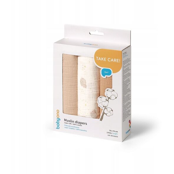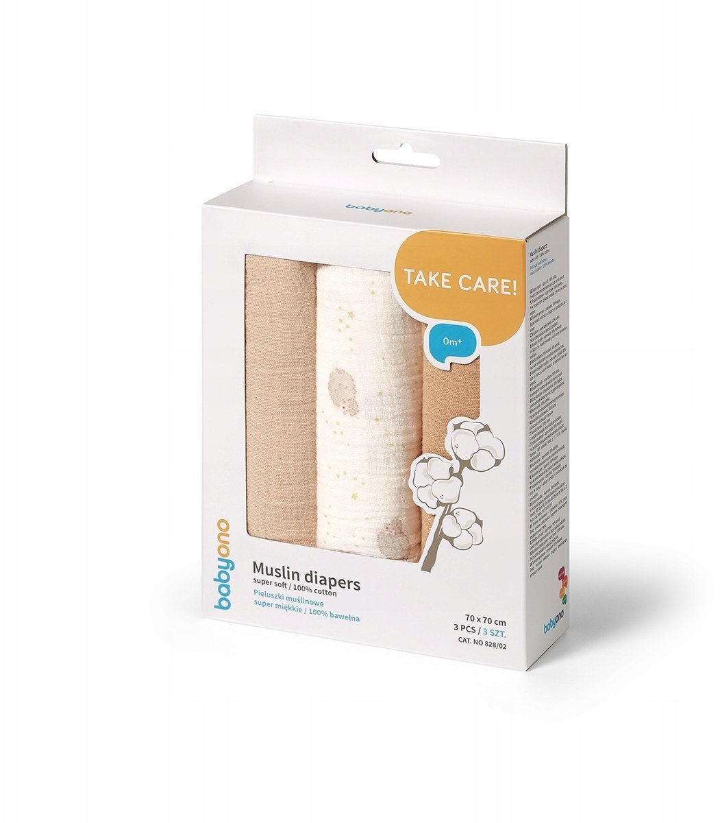 BABY ONO 828/02 PIELUSZKI muślinowe marszczone super miękkie beżowe