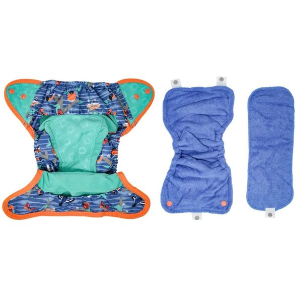 Το Pop-in είναι μια πάνα που μπορεί να χρησιμοποιηθεί τόσο κατά τη διάρκεια της ημέρας όσο και τη νύχτα (έως 12 ώρες) με ένα πρόσθετο ένθετο για τη νύχτα (μπορεί να αγοραστεί χωριστά ή μαζί με ένα σετ 5 πάνες). Συνιστούμε να αλλάζετε τα δοχεία κάθε τρεις ώρες.