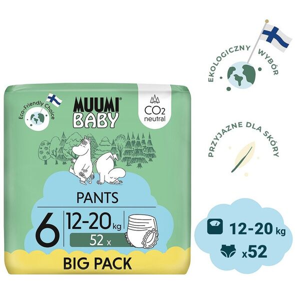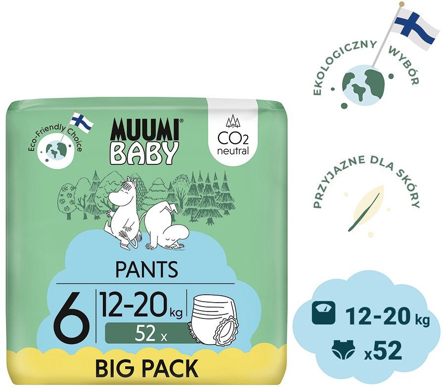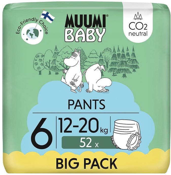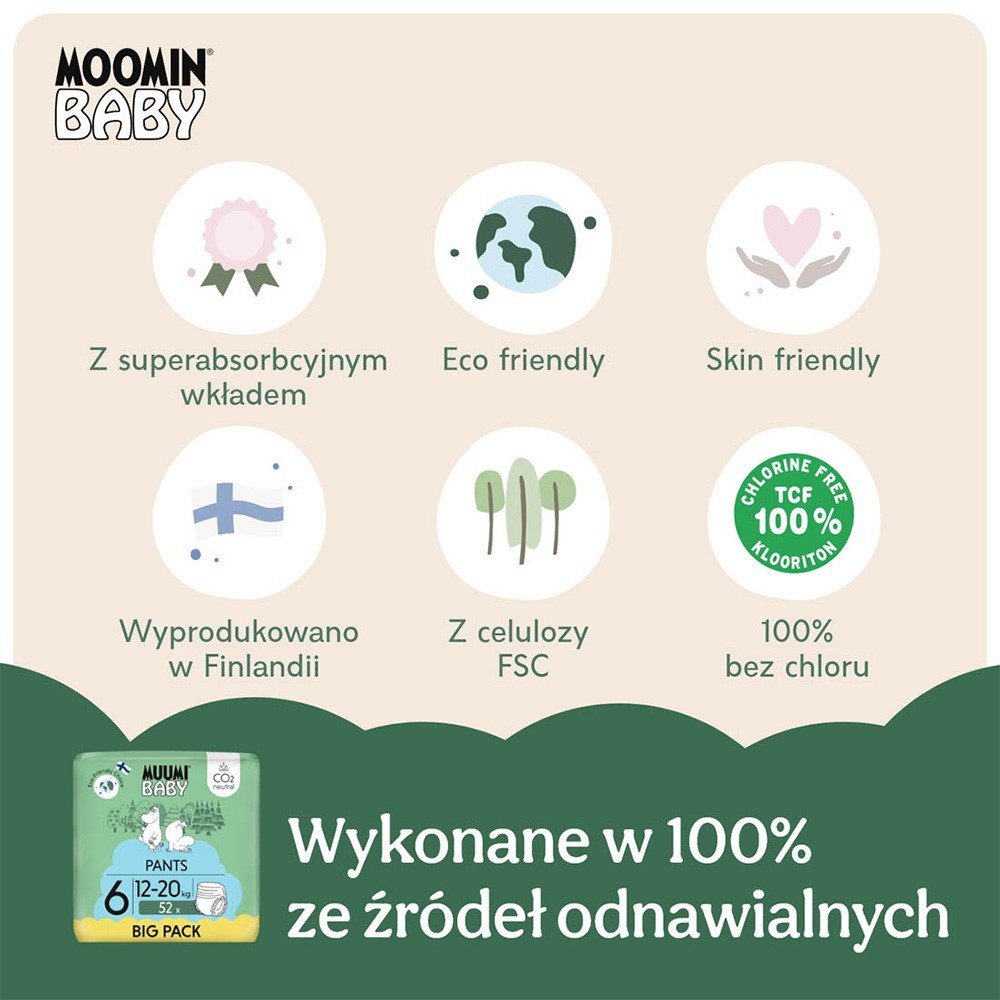 Muumi Baby, Οικολογικές πάνες-βρακάκια για παιδιά, μέγεθος 6 (12-20 kg), 52 τεμ.