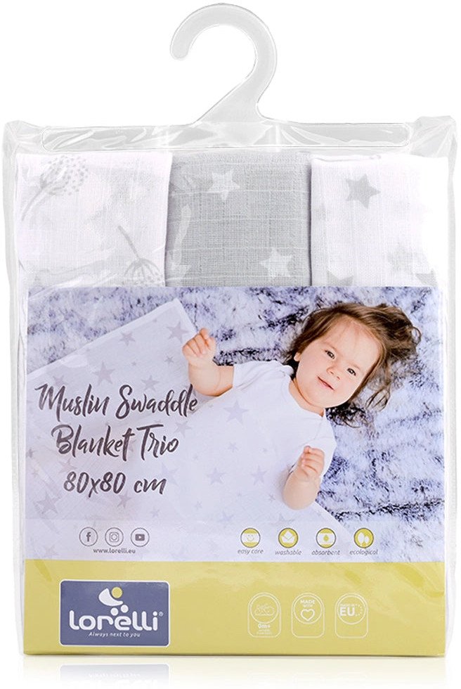 Μουσελίνα Lorelli Grey Mix, 80x80 cm, 3 τεμ.