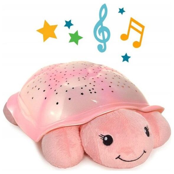 Odpłyń łagodnie w krainę dobrych snów pod rozgwieżdżonym niebem.Twinkling Twilight Turtle to nowa wersja naszego, oryginalnego i wielokrotnie nagradzanego Twilight Turtle!Teraz z dwoma kojącymi melodiami i setką gwiazd, które lampka może wyświetlać w trzech, pojedynczych kolorach, a także utworzyć wielokolorowy pokaz świetlny.Niech strach przed ciemnością stanie się przeszłością. Twinkling Twilight Turtle zmienia straszny, ciemny pokój w rozgwieżdżone prawdziwymi konstelacjami niebo na suficie i ścianach sypialni. Rodzice mogą po zgaszeniu świateł opowiadać dziecku o gwiazdach. Ilustrowany Przewodnik po gwiazdach Twinkling Twilight Turtle pomaga zauważyć Mały wóz i Wielką Niedźwiedzicę migoczące nad Tobą. Ponadto, możliwość wyboru trzech, kojących kolorów, pozwala dziecku nie tylko nauczyć się je rozpoznawać, a także naprawdę je doświadczyć - kolor bursztynowy promieniuje ciepłem i spokojem, zieleń tworzy radosną i odprężającą atmosferę, a niebieski pomaga wyciszyć zmysły.Cechy:odtwarza dwie melodie (Dolphin Dreams i Clair De Lune)efekt "migoczącej" gwiazdy oraz dwa, inne, zabawne efektylampka wyświetla na suficie i ścianach pokoju dziecka rozgwieżdżone niebo - 8 konstelacjiwyświetlane kolory: błękit oceanu, szmaragdowa zieleń i bursztynregulowany poziom głośnościregulator czasowy, który wyłącza lampkę po 45 minutachilustrowany przewodnik po gwiazdach pomaga zidentyfikować konstelacje, podczas wyświetlania pojedynczych kolorówWystarczy nacisnąć przycisk na skorupie żółwia, aby uruchomić konstelacje i cieszyć się ich efektem przez pełne 45 minut - tyle wystarczy, aby większość dzieci mogła spokojnie zasnąć. Po tym czasie lampka automatycznie się wyłącza, tym samym przedłużając żywotność baterii i pozwalając dziecku zapaść w najgłębszy sen.Świetny pomysł na prezent dla maluchów, które boją się ciemności. Być może najlepszą rzeczą w tej niezwykłej lampce jest to, że staje się pluszowym przyjacielem, towarzyszącym dziecku na dobranoc przez wiele lat!Wymaga 3 baterii AA (brak w zestawie).