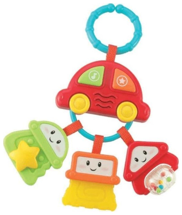 μενταγιόν σε σχήμα αυτοκινήτου αποτελείται από ένα μπρελόκ με τρία πλήκτρα, τα ζωηρά χρώματα θα τραβήξουν την προσοχή και θα ενθαρρύνουν το παιχνίδι, το παιχνίδι μπορεί επίσης να λειτουργήσει ως οδοντοφυΐας, έχει δύο πολύχρωμα κουμπιά λειτουργίας που ενεργοποιούν ήχους, θορύβους και αστείες μελωδίες, το καθένα το κλειδί έχει διαφορετική λειτουργία: - ένας κύλινδρος με μπάλες - ένα αστέρι - ένας οδοντοφυΐας από υψηλής ποιότητας υλικό ασφαλής για το παιδί{Type} Εικόνα . {Υλικό} Πλαστικό . {Ηλικία} Από 3 μηνών. {Ηλικία} Από 3 μηνών. {Υλικό} Πλαστικό