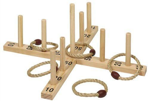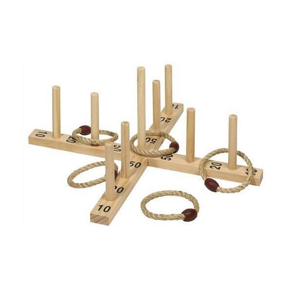 Ένα υπέροχο παιχνίδι ρίψης κρίκων σε ξυλάκια. Αναπτύσσει τον κινητικό συντονισμό και την ακρίβεια. Κατάλληλο τόσο για το δωμάτιο όσο και για τον κήπο. Κατασκευασμένο από φυσικά υλικά - ξύλο και σιζάλ.