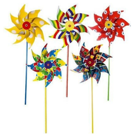 kolorowy, mieniący się wiatraczek,w pięknych kolorach,bardzo wytrzymały o średnicy 18 cmpatyczek o dł. 34 cmMoże służyć jako zabawkalub jako odstraszacz ptakówi szkodników z ogródkaZabawka dostępna w różnych kolorach