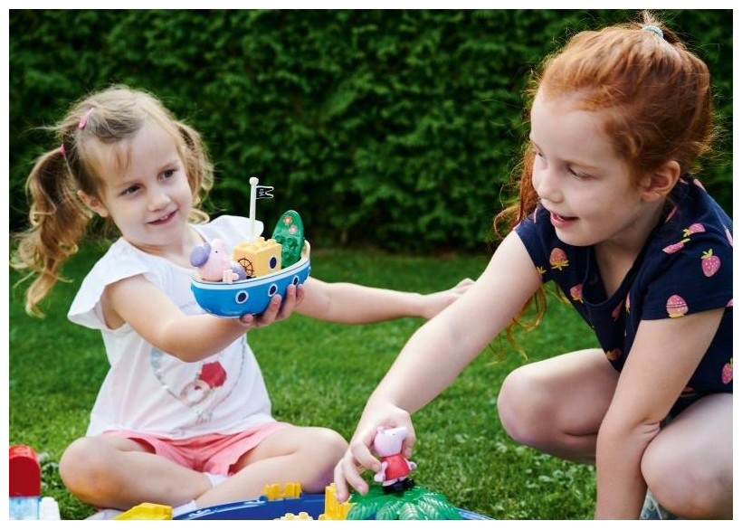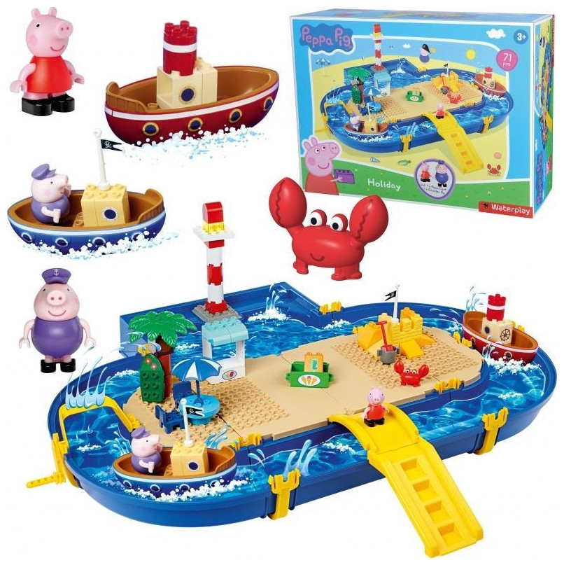 Το σετ Peppa Pig Holiday BIG Waterplay συνδυάζει τη διασκέδαση με την ευχαρίστηση της επαφής με το νερό. Όταν το παιδί ρίχνει νερό προκαλεί κίνηση, η οποία κινεί τις βάρκες στα κανάλια. Ρεύμα νερού στο κανάλι μπορεί επίσης να δημιουργηθεί θέτοντας έναν τροχό νερού σε κίνηση.