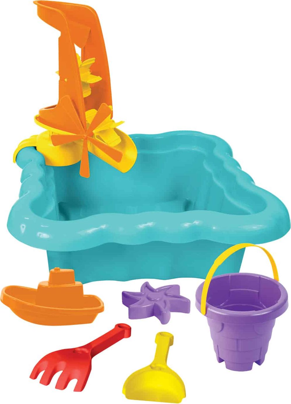 Ένα προϊόν, τόσες πολλές δυνατότητες για μεγάλη διασκέδαση! Το σετ αποτελείται από ένα sandbox σε χαρούμενο μπλε χρώμα και πολλά πρόσθετα αξεσουάρ: ένα μικρό κουβά 0,8 l, ένα μύλο με προσάρτηση στην άκρη του sandbox, ένα φτυάρι, μια τσουγκράνα, ένα καλούπι και ένα πλοίο. Το παιχνίδι υποστηρίζει την ολοκληρωμένη ανάπτυξη του παιδιού. Μπορούμε εύκολα να διαφοροποιήσουμε τη διασκέδαση των παιδιών αντικαθιστώντας την άμμο με κινητική άμμο ή νερό! Ένα sandbox με αξεσουάρ είναι ένα δημιουργικό παιχνίδι που μπορεί να χρησιμοποιηθεί στο σπίτι, στον κήπο ή στην παραλία. Ο μύλος και τα παρεχόμενα αξεσουάρ θα ενθαρρύνουν τα παιδιά να παίζουν σε εξωτερικούς χώρους. Το παιχνίδι είναι κατασκευασμένο από υλικό υψηλής ποιότητας, είναι εύχρηστο και σταθερό.