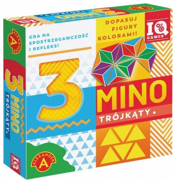 Gra 3 - Mino Trójkąty Nowa propozycja z lubianej przez wszystkich miłośników łamigłówek serii IQ Games przypadnie do gustu graczom, którzy lubią dynamiczną rozgrywkę. 3-Mino to świetny trening spostrzegawczości i refleksu. Rozgrywka rozpoczyna się od ułożenia na środku stołu figury w kształcie trójkąta. Zadaniem uczestników jest jak najszybsze dopasowanie kolorowych trójkątów z własnych zasobów, tak, aby stykały się z już ułożonymi na stole krawędziami i takimi samymi kolorami. Znakomitym urozmaiceniem są dwa poziomy trudności, które pozwolą na satysfakcjonująca zabawę początkującym, jak i bardziej zaawansowanym. Natomiast wybór spośród dwóch wariantów gry pozwala uporządkować rozgrywkę na 10-sekundowe tury jednego gracza lub postawić na większy chaos i układanie trójkątów jednocześnie przez wszystkich rywali. EAN: 5906018025323 Gwarancja: 24 miesiące Kod dostawcy: 25323 Nr katalogowy: 25323 Rodzaj: Quizy i łamigłówki Min. liczba graczy: 2 Max. liczba graczy: 6 Wersja: Podstawa Wersja językowa: Polska Wymagania wiekowe: od 7 lat Płeć: Chłopcy Produkt na baterie: Nie Baterie w zestawie: Nie Zasilanie: Nie dotyczy Akcesoria w zestawie: Trójkątne kartoniki - 76 sztuk Instrukcja Klepsydra Pozostałe parametry: Wymiary opakowania: 24.5 x 25.5 x 6 cm