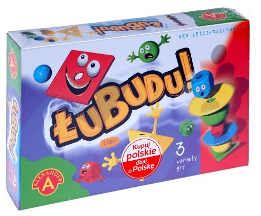 Το ŁUBUDU είναι ένα arcade παιχνίδι σε 3 παραλλαγές. Το καθήκον των συμμετεχόντων είναι να κατασκευάσουν έναν πύργο από πλαστικά στοιχεία διαφόρων σχημάτων και μεγεθών. Ανάλογα με την παραλλαγή του παιχνιδιού, νικητής είναι αυτός που ολοκληρώσει ένα συγκεκριμένο μοτίβο πύργου γρηγορότερα ή που κατασκευάζει τον ψηλότερο πύργο. Το παιχνίδι είναι εξαιρετικά συναρπαστικό και διδάσκει υπομονή, ακρίβεια, επιδεξιότητα και αυτοέλεγχο.{Ηλικία} Από 6 ετών. {Αριθμός παικτών} 2-3 . {Game time} Οποιαδήποτε . {Διδακτική} Πρακτική δράση. {Type} Παιχνίδι εξισορρόπησης . {Επεξεργασία} Φως