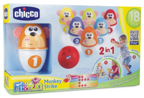Οι καρφίτσες μπόουλινγκ από τη σειρά Fit&Fun είναι το πρώτο σετ καρφίτσες μπόουλινγκ, που προσφέρουν εξαιρετικά συναισθήματα μετά από κάθε ακριβές χτύπημα σε 6 πολύχρωμες καρφίτσες μπόουλινγκ με μοτίβα μαϊμού. Κάθε καρφίτσα μπόουλινγκ μπορεί να χωριστεί στη μέση και τα μεμονωμένα μισά μπορούν να χρησιμοποιηθούν για να φτιάξουν μια τεράστια πυραμίδα. Μια τέτοια διασκέδαση διεγείρει τη δημιουργικότητα των παιδιών. Οι καρφίτσες του μπόουλινγκ είναι αριθμημένες, κάτι που ενθαρρύνει το παιδί να μάθει πώς να μετράει μέχρι το 6. Η μπάλα του μπόουλινγκ είναι κατασκευασμένη από μαλακό υλικό ώστε να μπορεί να χρησιμοποιηθεί με ασφάλεια στο σπίτι. Το Colorful Bowling διεγείρει κυρίως τον συντονισμό των κινήσεων των χεριών και των ματιών και βελτιώνει την ακρίβεια των κινήσεων.{Τύπος} Μπόουλινγκ