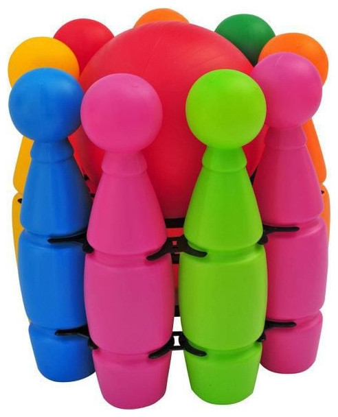 Γιγαντιαίο σετ μπόουλινγκ με 1 μπάλα μπόουλινγκ. Καρφίτσες μπόουλινγκ σε πολλά διαφορετικά χρώματα.{Τύπος} Μπόουλινγκ