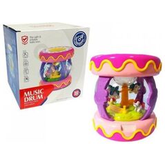 Lean Sport Πολύχρωμο Τύμπανο με Καρουζέλ Ήχοι Ζώων Ροζ (4571)