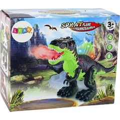LeanToys Δεινόσαυρος που αναπνέει φωτιά, με υδρατμούς, φωτίζει, με μπαταρίες, πράσινος