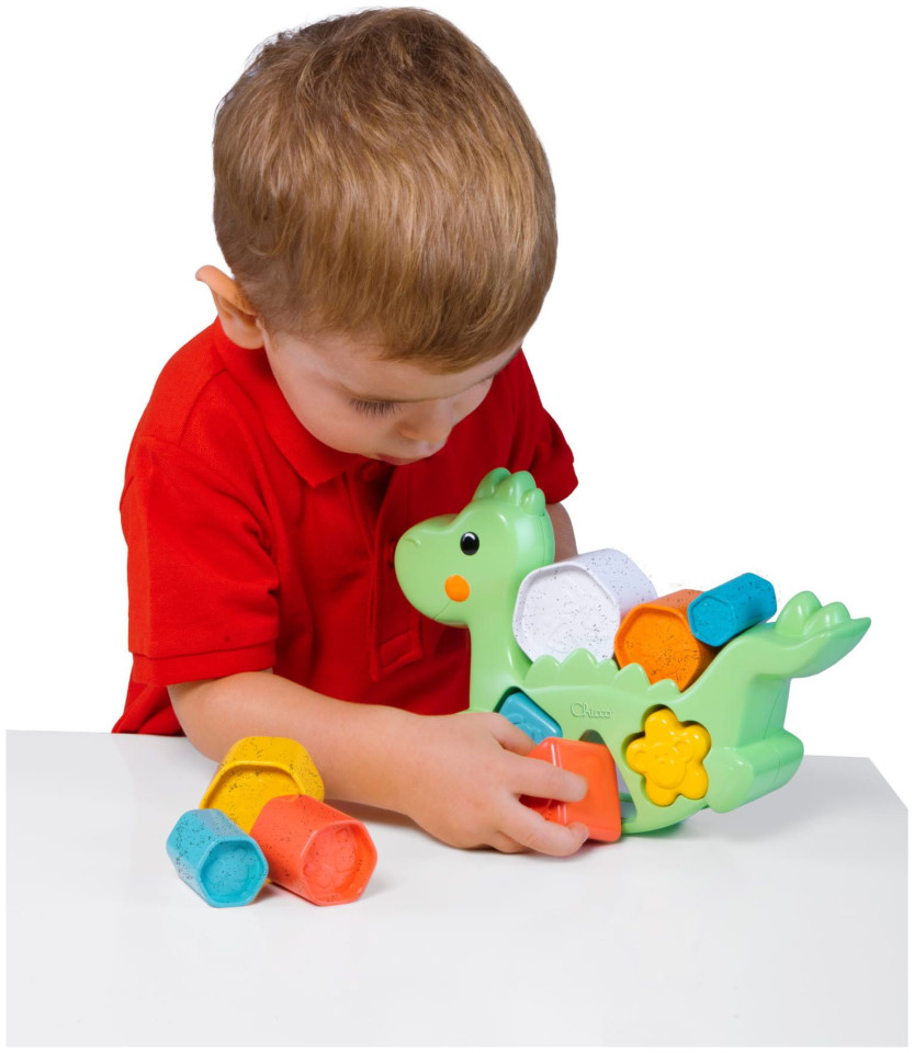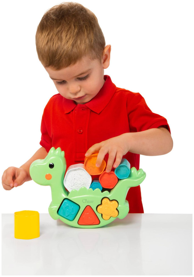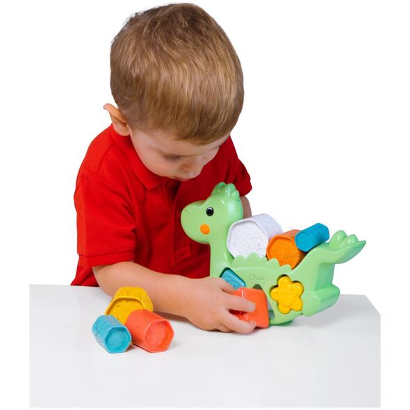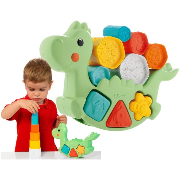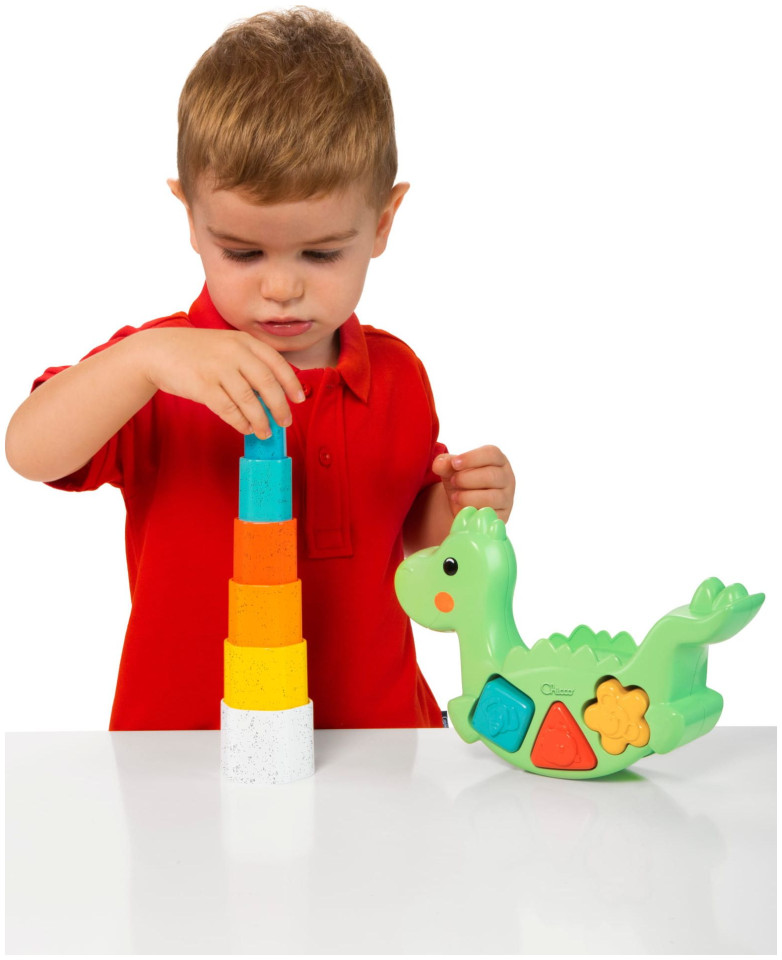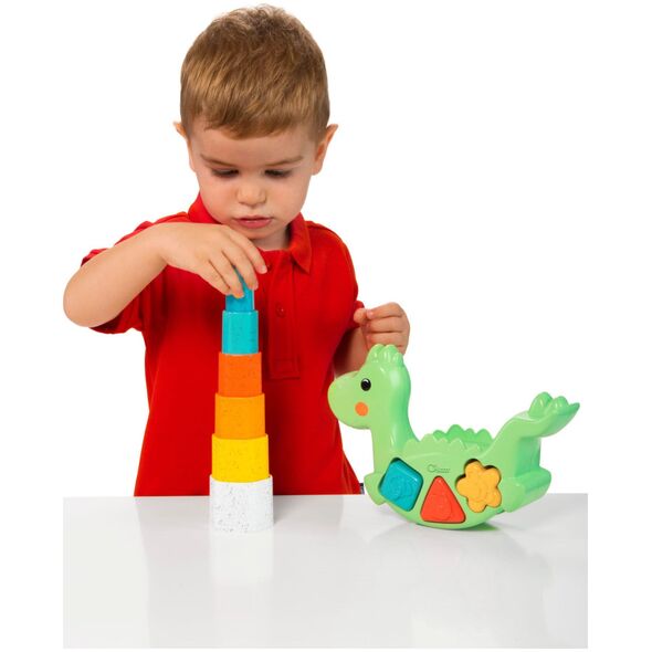 Το σετ αποτελείται από έναν πράσινο δεινόσαυρο, 3 μπλοκ διαφόρων σχημάτων και χρωμάτων και 6 πολύχρωμα κύπελλα. Το παιχνίδι σας επιτρέπει να? τακτοποιώντας κύπελλα για να μην πέσει ο δεινόσαυρος, ταιριάζουν σχήματα και χτίζουν έναν πύργο από κύπελλα! Σίγουρα θα προσφέρει πολλές ώρες διασκέδασης και θα ενδιαφέρει το μικρό σας.