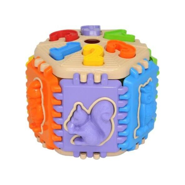 WADER LEŚNA SZKOŁA SORTER 32 el. 42270 Leśna szkoła sorter posiada 32 elementy do zabawy i nauki. Możemy dziecko nauczyć kolorów, kształtów, cyferek, literek. Na bocznych ściankach mamy dopasowywankę z leśnymi zwierzątkami i krasnoludkiem. Każda ściana zabawki to rodzaj klocka wafla. Na górze można dopasować literki i cyferki. Na dole - kształty. Wymiary: 19 cm x 19 cm x 17 cm Zabawka wspiera rozwój umiejętności motorycznych dziecka.. Sorter przeznaczony dla dzieci od 12. miesiąca życia. Zabawki posiadają certyfikat bezpieczeństwa CE.