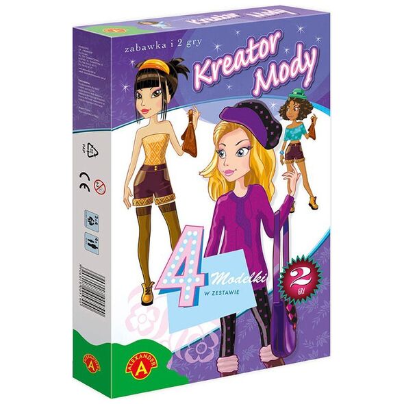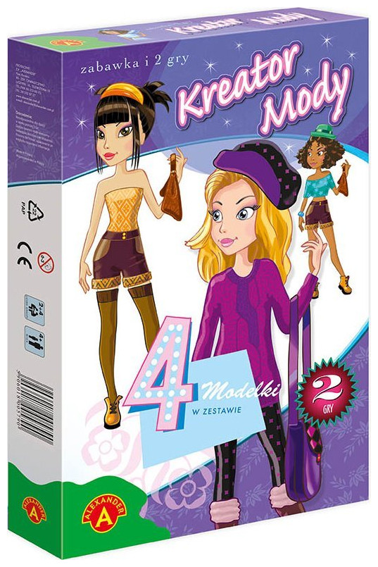 "Kreator mody" to zabawa polegająca na ubieraniu 4 wspaniałych modelek z dobranych i skomponowanych przez siebie elementów garderoby, znajdujących się w pudełku. Elementy ubrań są bardzo zróżnicowane pod względem kształtu i kolorystyki, co pozwoli na tworzenie zaskakujących i oryginalnych kreacji. Do wizerunków modelek można łatwo przyczepiać różne części garderoby (bez użycia kleju). Zabawa w kreatora mody rozbudzi Twoją wyobraźnię i zachęci do twórczego działania sprawiając jednocześnie wiele radości i satysfakcji.