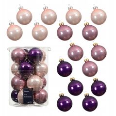 Glass Christmas tree toy set BAUBLES MIX, pink/purple, 8 cm, 16 pcs.