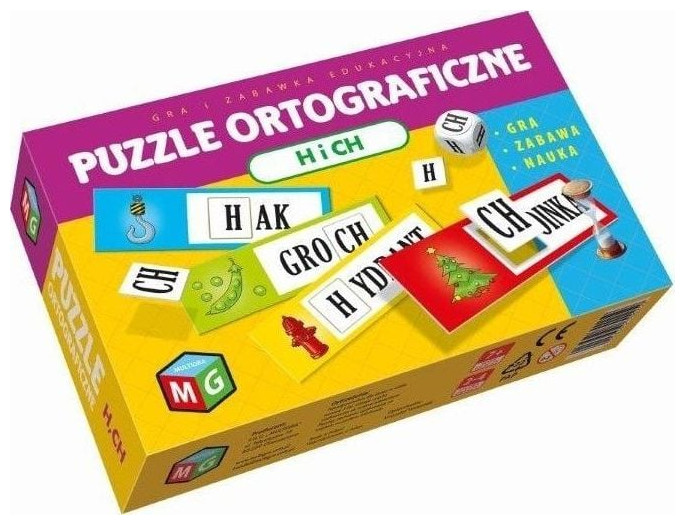 W odmierzanym przez klepsydrę czasie gracze starają się jak najszybciej uzupełnić brakujące litery w wybranych wyrazach. Wygrywa ten, kto prawidłowo ułoży jak najwięcej wyrazów. W czasie emocjonującej rywalizacji i zabawy gra uczy poprawnej pisowni wyrazów z "CH" i H". Zawartość pudełka: puzzle -30 szt., klepsydra, kostka z literami, instrukcja.