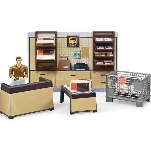 UPS logistics center by Bruder Το σετ περιλαμβάνει: - μια φιγούρα από τη σειρά bworld σε κλίμακα 1:16 - έναν υπάλληλο της UPS - ένα μοντέλο του κέντρου logistics 21,6 cm x 14,4 cm - αξεσουάρ.{Ηλικία} Από 3 ετών. {Destiny} Universal . {Effects} Κανένα . {Κινούμενα στοιχεία} Ναι. {Ύψος σχήματος} 10,7 cm. {Series} bWorld . {Model}UPS Logistics Center