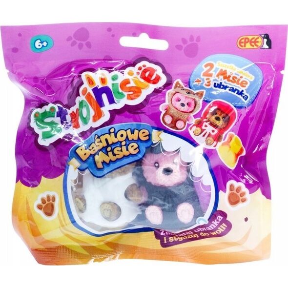 STROJNISIE BAŚNIOWE MISIE 2-PACK ANIOŁEK DIABEŁEK + FIOLETOWA SUKIENKA KSIĘŻNICZKI EPEE 09541_2Strojnisie - Baśniowe Misie - 2-pack - Aniołek+Diabeł+fioletowa sukienka księżniczki Strojnisie Modne Misie od EPEE to kolekcja przesłodkich, elastycznych misiów. Każdy z nich ma wyjątkowy strój, który w jednej chwili pozwala im być kimkolwiek chcą. W krainie Strojnisiów wszystko jest możliwe. W zestawie znajdziemy różowego oraz brązowego , uroczego misia z 3 ubrankami. Zabawka jest bardzo elastyczna, co pozwala dziecku na zgniatanie i ściskanie. Strojnisie Modne Misie wyglądają mega słodko, kiedy są przebrane. Zbierz je wszystkie, zamieniaj ubranka i stylizuj do woli. Produkt jest zapakowany .Strojnisie – Baśniowe Misie wyglądają tak uroczo, kiedy są przebrane. Zbierz je wszystkie, zamieniaj ubranka i stylizuj do woli! – wspaniała zabawa – można je kolekcjonować – można je przebierać – są elastyczne Zawartość opakowania: 2 Misie + 3 ubranka. Do wyboru z kolekcji: Czerwony Kapturek+Wilk+żółta sukienka księżniczki, Aniołek+Diabeł+fioletowa sukienka księżniczki,Kopciuszek+Dynia+strój Brzydkiego Kaczątka, Księżniczka+Smok+strój Łabędzia. Cena dot. 1szt 2-pack wzór- Aniołek+Diabeł+fioletowa sukienka księżniczki