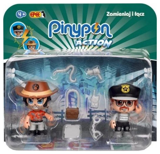 ένα παιχνίδι που προορίζεται για παιδιά άνω των 4 ετών{Ηλικία} Από 4 ετών. {Destiny} Universal . {Series} PinyPon Action . {Effects} Κανένα . {Κινούμενα μέρη} Αρ. {Ύψος σχήματος} 7 cm. {Variant} Ταξιδιώτης και αστυνομικός