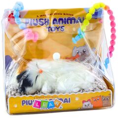Śpiący Biały Kot Na Poduszce Figurka z Futerkiem Torba Dźwięki