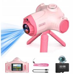 Projektor Rzutnik Aparat Kamera 3w1 Dla Dzieci 48mp 1080p Karta 32gb Statyw / Ha92 Różowy
