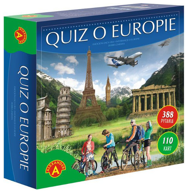 Περιγραφή προϊόντος: Ένα συναρπαστικό παιχνίδι και μεγάλη διασκέδαση κατά τη διάρκεια του οποίου οι συμμετέχοντες απαντούν σε ερωτήσεις σχετικά με την Ευρώπη. Οι παίκτες μπορούν να απαντήσουν σε 388 ερωτήσεις από 97 κάρτες και να έχουν 1.164 απαντήσεις για να διαλέξουν. Τα θέματα ερωτήσεων και απαντήσεων περιλαμβάνουν: ιστορία, γεωγραφία και φύση, επιστήμη και τεχνολογία και ευρωπαϊκό πολιτισμό και τέχνη. Κατά τη διάρκεια του παιχνιδιού, πρέπει επίσης να δείξετε την επιδεξιότητά σας πυροβολώντας από έναν καταπέλτη σε έναν στόχο : 97 κάρτες με ερωτήσεις και απαντήσεις, ταμπλό παιχνιδιού, πιόνια, ζάρια, μάρκες, κλεψύδρα, καταπέλτης, κύπελλο, σημειωματάριο Το παιχνίδι προορίζεται για 2 έως 4 παίκτες ηλικίας από 10 χρόνια.{Ελάχιστος αριθμός παικτών} 2 . {Μέγιστος αριθμός παικτών} 4 . {Language version} Πολωνία . {Approximate gameplay time} Δεν υπάρχουν διαθέσιμα δεδομένα