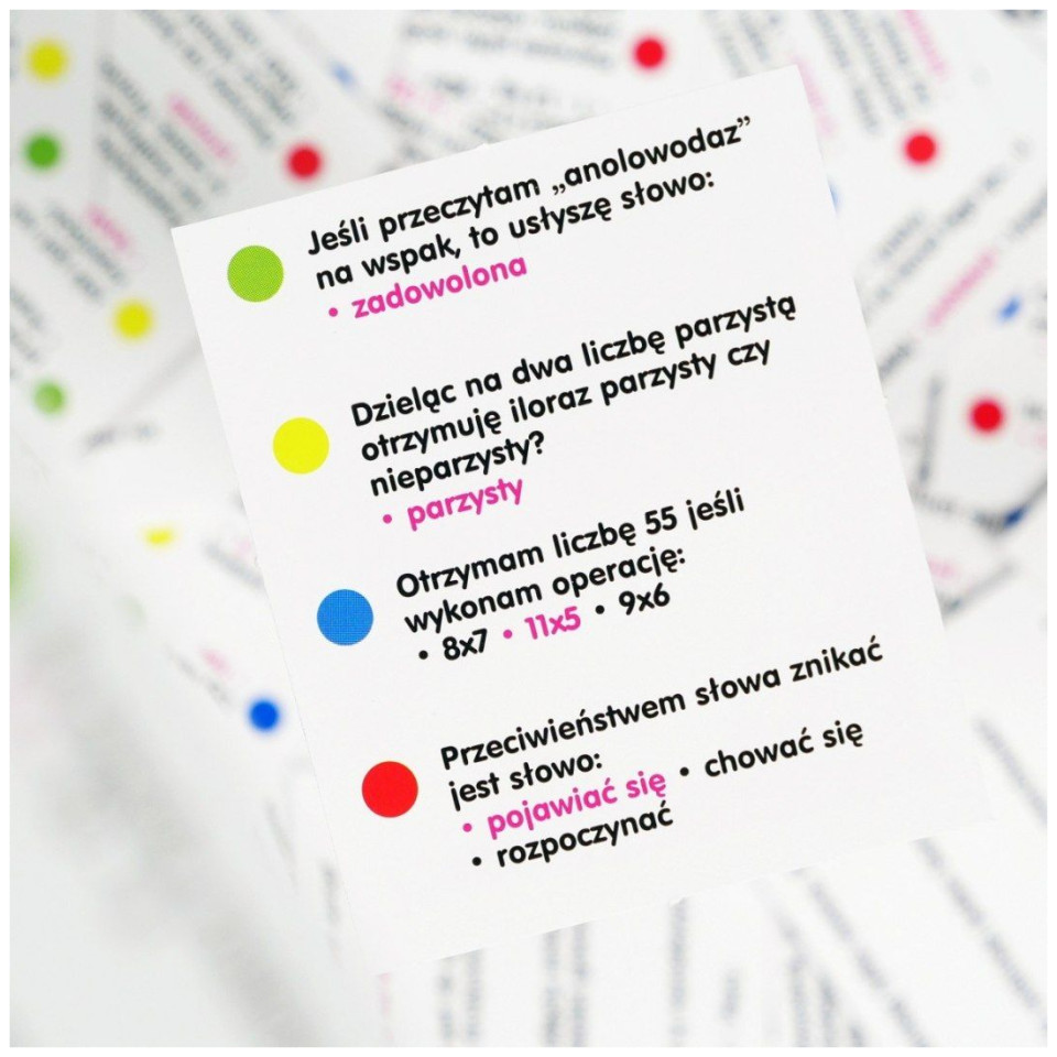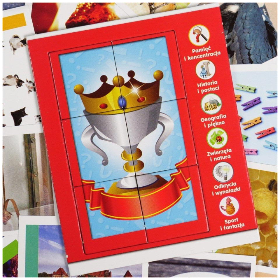 Ένα πρωτότυπο εκπαιδευτικό επιτραπέζιο παιχνίδι για όλη την οικογένεια, που περιέχει 312 κάρτες χωρισμένες σε διάφορες κατηγορίες. Κατά τη διάρκεια του παιχνιδιού, παλεύετε για να κερδίσετε ένα κύπελλο για να δώσετε σωστές απαντήσεις σε ερωτήσεις που δεν είναι τόσο εύκολες όσο μπορεί να φαίνεται... Ξέρετε πώς μοιάζει η σαλαμάνδρα ή πού ζει μια μέδουσα; Ποιος ανακάλυψε το τηλέφωνο; Τι είναι η πυξίδα; Κατά τη διάρκεια του παιχνιδιού θα μάθετε τις απαντήσεις σε όλες αυτές τις ερωτήσεις. Το παιχνίδι γίνεται πιο ελκυστικό από ένα ηλεκτρονικό χρονόμετρο με δύο λειτουργίες αντίστροφης μέτρησης: easy και sprint, καθώς και spinner. Ποιος θα είναι ο πρωταθλητής του σούπερ κουίζ; Ώρα να μάθετε!