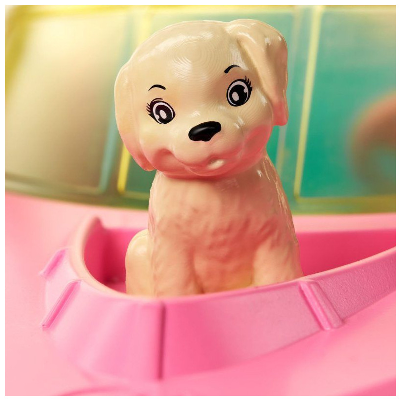 Η Barbie συνοδεύεται από ένα χαριτωμένο κουτάβι - έχει τη δική του θέση στην πλώρη.