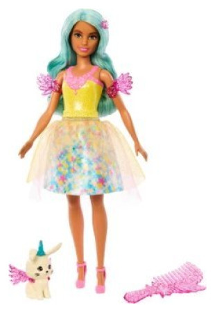Barbie reg A Touch of Magic trade Szczypta Magii Lalka Teresa reg z długimi włosami i fantastyczną stylizacją baśniowe zwierzątko i grzebień /p p Odkrywaj magiczny świat bdquo Barbie A Touch of Magic Szczypta Magii rdquo z tą lalką Barbie reg Teresą. Lalka Teresa reg inspirowana bohaterką serialu ma na sobie błyszczący str oacute j z detalami skrzydełek i sp oacute dniczką z baskinką. Uroczy zwierzaczek i grzebień do stylizacji włos oacute w wzbogacają bajkową zabawę. Lalka nie stoi samodzielnie. Kolory i elementy dekoracyjne mogą się r oacute żnić. /p p Lalka Teresa reg inspirowana bajką bdquo Barbie A Touch of Magic Szczypta Magii rdquo ma na sobie baśniowy str oacute j, a w zestawie jest także figurka zwierzątka i akcesoria. /p p Z tą lalką Teresa reg o kolorowych włosach ułożonych w miękkie fale zabawa w układanie fryzur nabiera magii. Piękne turkusowe włosy można rozczesać dołączonym grzebieniem. /p p Str oacute j składa się z błyszczącego plastikowego gorsetu, sp oacute dniczki z nadrukiem i p oacute łprzezroczystą warstwą materiału oraz bucik oacute w. Brokatowe bransoletki na ramiona ze skrzydełkami nadają stylizacji blasku. /p p Uroczy kr oacute liczek też wygląda fantastycznie. Ma r oacute g jednorożca i przyczepiane skrzydełka, kt oacute re wzbogacają magiczne opowieści. /p p Zabawki i lalki Barbie reg A Touch of Magic trade Szczypta Magii to czarujący prezent dla dzieci od 3 roku życia. Zbierz je wszystkie i wymyślaj zaczarowane opowieści o przyjaźni. Sprzedawane oddzielnie, zależnie od dostępności.