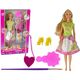 Μπορούμε επίσης να βρούμε χρυσά παπούτσια που ταιριάζουν τέλεια με όλο το styling. Χάρη σε αυτά, η κούκλα σας θα μοιάζει με πραγματικό μοντέλο. Μια ροζ χτένα θα σας βοηθήσει να δημιουργήσετε όμορφα χτενίσματα και μια ροζ τσάντα σε σχήμα καρδιάς θα είναι το τέλειο αξεσουάρ για κάθε περίσταση.