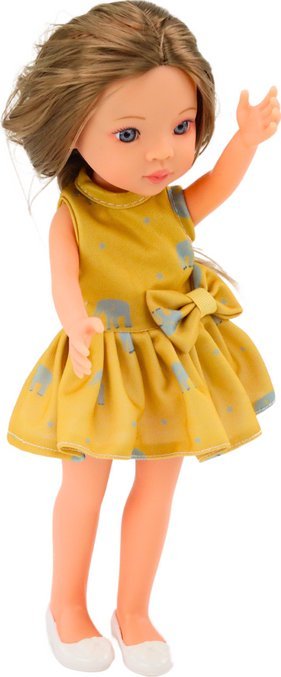 LeanToys Κούκλα Κίτρινο Φόρεμα Καφέ Μαλλιά Μεγάλη Κούκλα 33cm