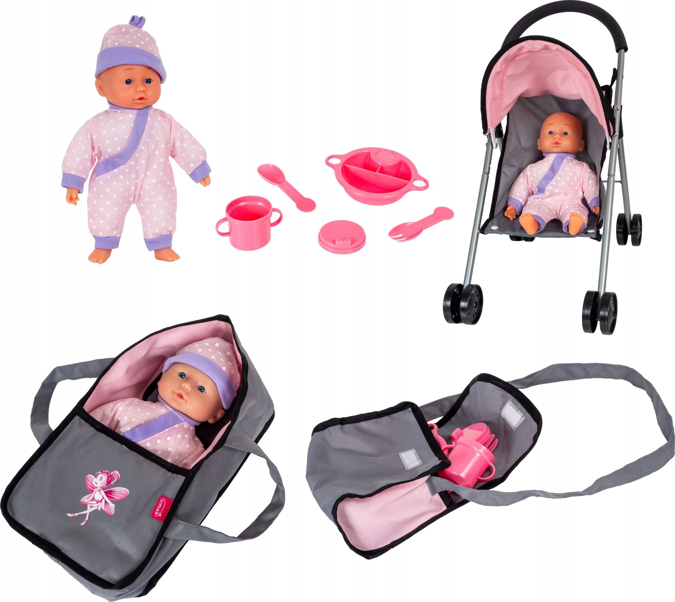 Wózek spacerowy z lalką numer katalogowy: 89178Wózek spacerowy z laką bobaskiem z serii Bambolina. Wózek wykonany z materiałów dobrej jakości, doskonały na spacery w mieszkaniu oraz na zewnątrz. W zestawie Lalka Bambolina,która wygląda jak słodki dzidziuś. Ma gumową główkę, rączki i stopki, brzuszek zaś jest z materiału. Sympatyczny bobasek, który sprawi wiele radości małej opiekunce, stanie się ulubionym towarzyszem wspólnych zabaw. Nową przyjaciółkę może wozić w wózku , który jest w zestawie. Lalka wykonana z dobrej jakości materiałów,starannie i precyzyjnie. Spacerówka posiada wyjmowane nosidło oraz torbę na akcesoria, przywieszaną na rączkę jak w prawdziwym wózku. Zabawka rozwija zmysł opiekuńczy Umiejętność kreatywnej zabawy małą motorykę Wymiary lalki: wys: 44 x 28 x 11 Zabawka przeznaczona dla dzieci od 3 lat Lalka już cieszy się na wspólną zabawę! To idealny towarzysz zabaw, który nie tylko zapewnia rozrywkę, ale również edukuje i rozwija zdolności komunikacyjne maluchów. Podczas zabawy lalkami, zachodzą silne procesy sensoryczne, które są niezbędne do prawidłowego rozwoju dziecka. Dziecko, podczas zabawy lalką odbiera w mózgu sygnały, które następnie przetwarza i odpowiada, odpowiednio reagując. Lalki to nierozłączny element dzieciństwa. Zachęcają do aktywnej oraz kreatywnej zabawy, dają również możliwość stworzenia własnego świata. Dzięki nim uczymy się opiekuńczości oraz wrażliwości. Z lalką dziecku łatwiej jest wkroczyć w świat radości, strachu, euforii i smutku.Noszenie, kołysanie, przytulanie lalki przynosi wiele pozytywnych emocji i pozwala na harmonijny rozwój. Poprzez zabawę pobudza rozwój systemów sensorycznych. WYSOKA JAKOŚĆ PRODUKTU!