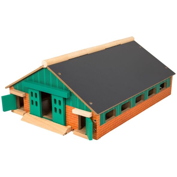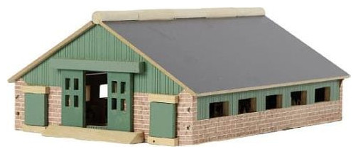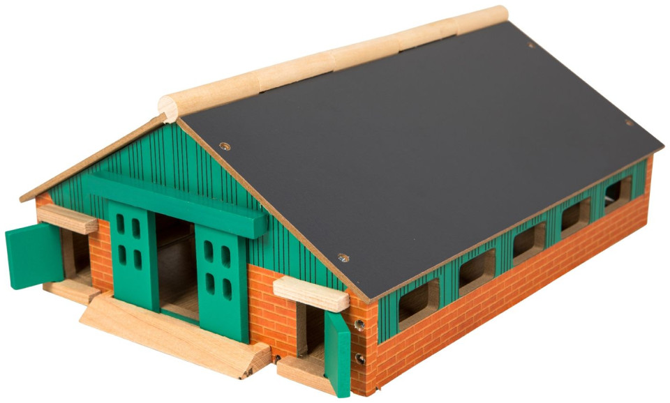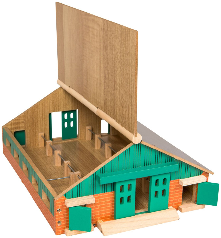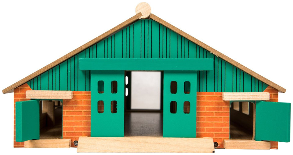 GŁÓWNE CECHY:-wymiary: długość: 30cm. szerokość: 21cm, wysokość 11cm-otwierany dach-otwierane bramy i drzwi wejściowe do obory-produkt wykonany z drewna i materiałów drewnopodobnych-brak w zestawie widocznych na zdjęciach figurek zwierząt, traktorów i akcesoriów-produkt do samodzielnego złożenia, prosta instrukcja w zestawieWymiary opakowania: 21 x 28,5 x 4 cm